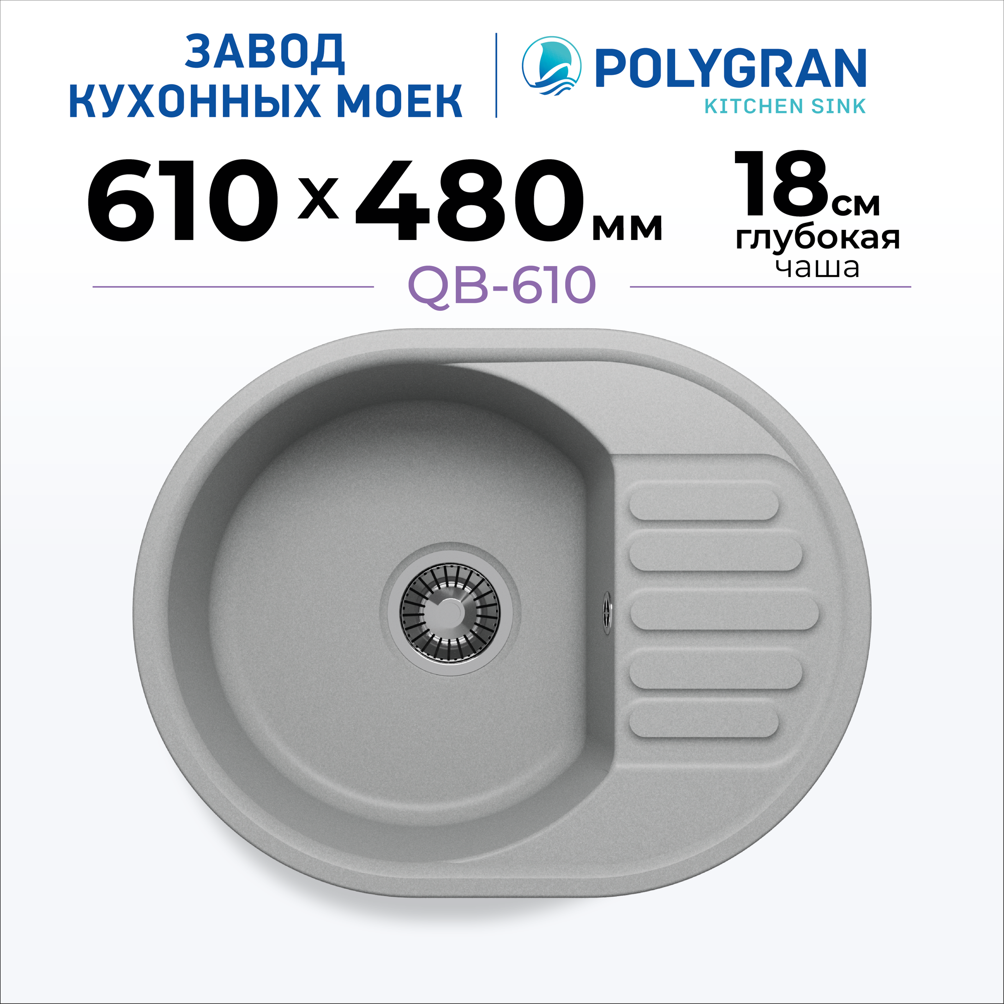 Мойка кухонная Polygran Quartz Bond 610, Грей, арт.856516