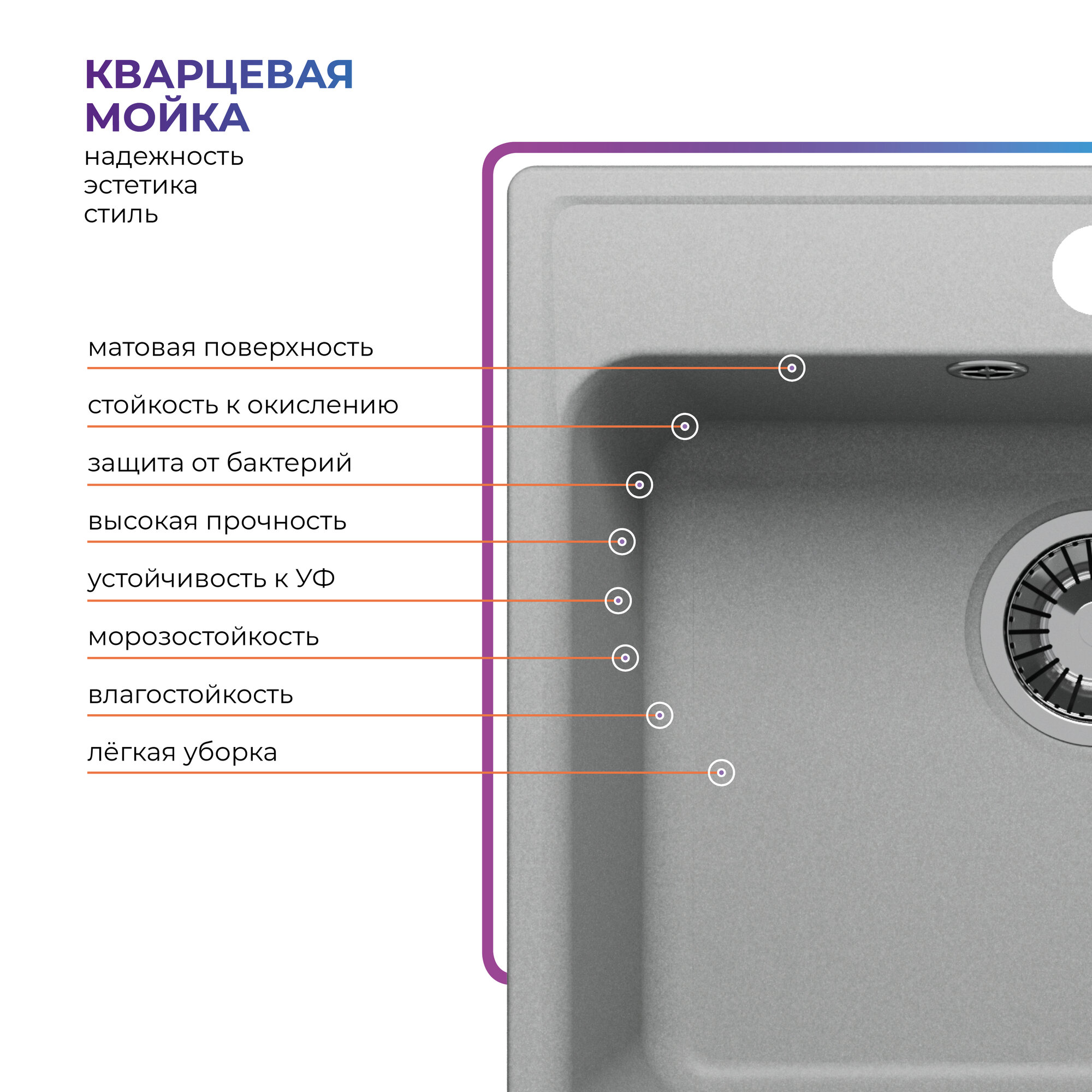 СохранитьКухонная мойка из искусственного камня QUARTZBOND BOND-530 Кварц (Платина) интересное: