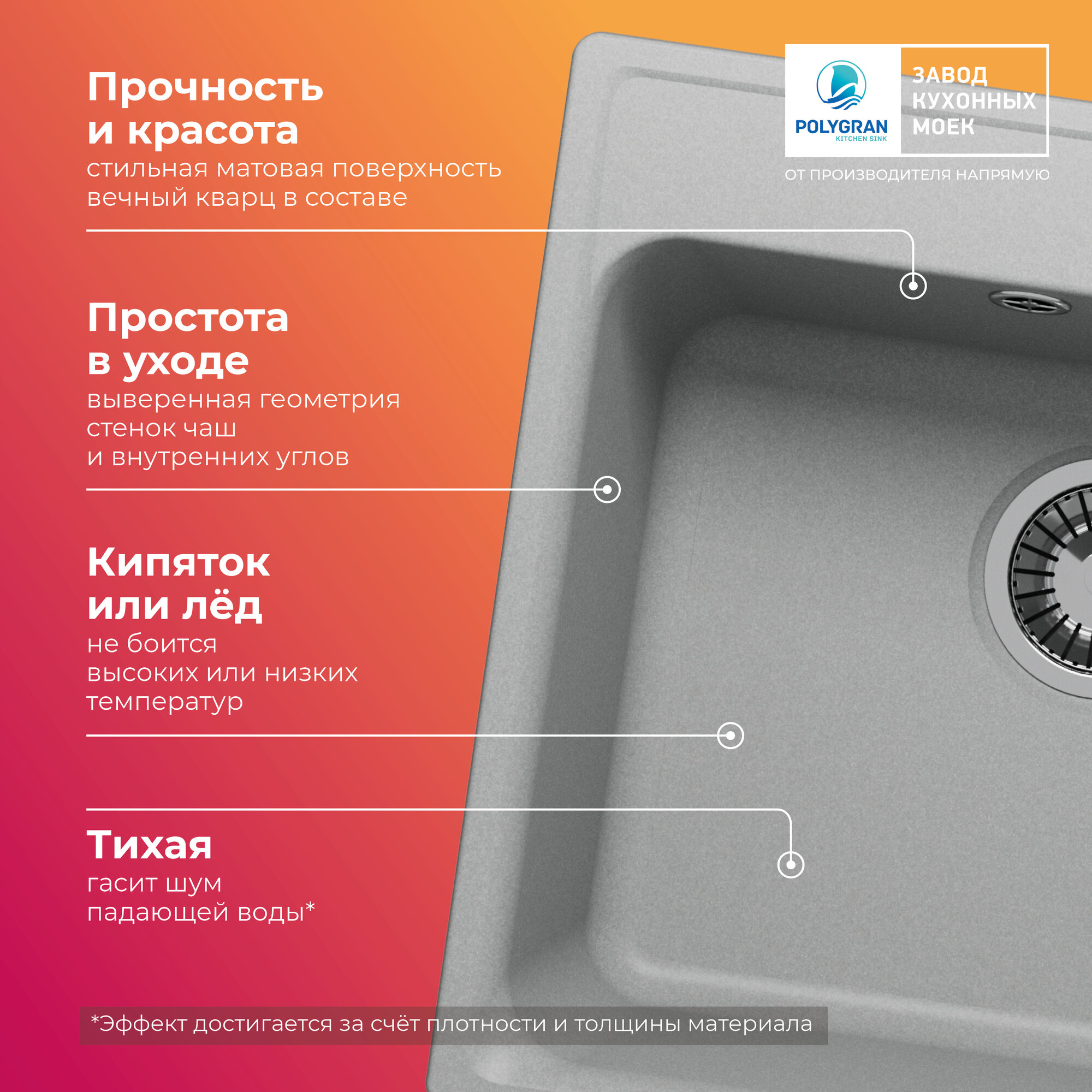 Polygran Мойка кухонная Polygran Quartz Bond 480, уголь, арт,688193
