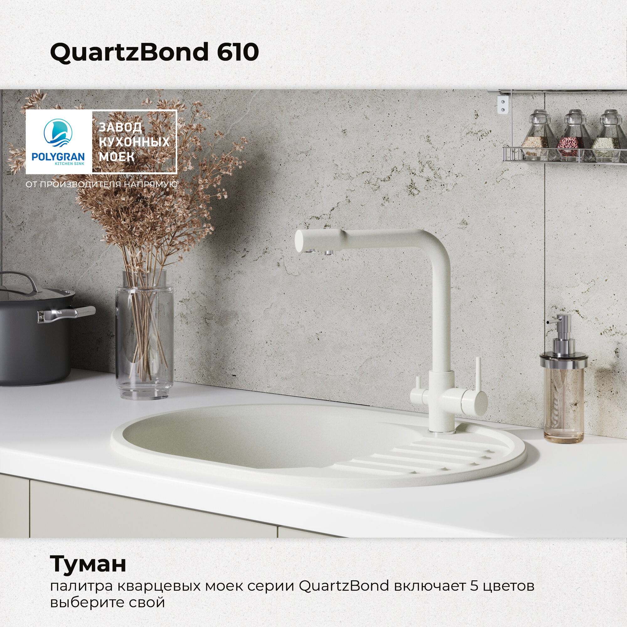 Ниже Вы можете прочитать отзывы на Кухонная мойка из искусственного камня QUARTZBOND BOND-610 Кварц (Туман), ознакомится с подробными характеристиками, посмотреть интересные обзоры и фотографии на Кухонная мойка из искусственного камня QUARTZBOND BOND-610 Кварц (Туман).