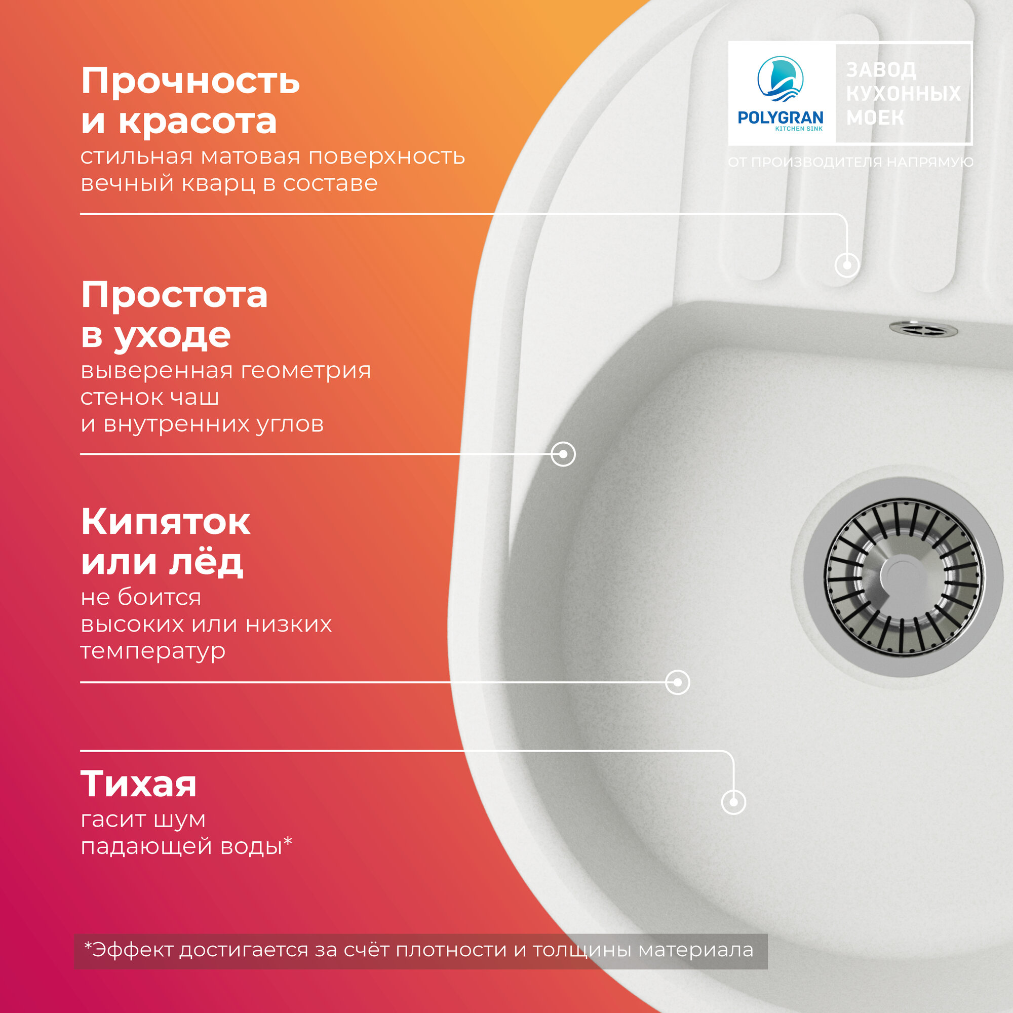 | Минусы: | Неправильно указан диаметр раковины. |