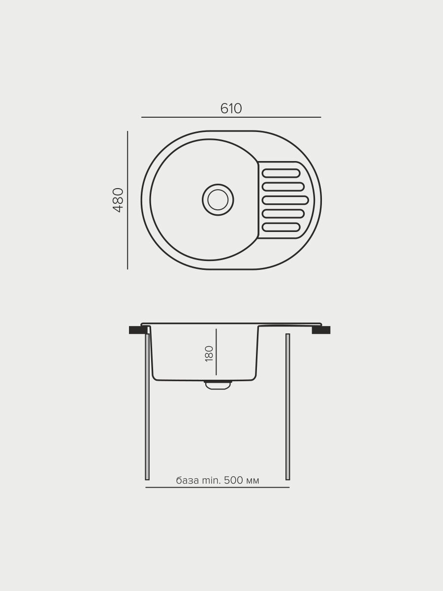 Кварцевая мойка для кухни QUARTZBOND BOND-480, дым, 480 х 180