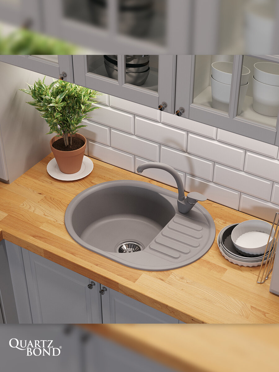 Кухонная мойка из искусственного камня QUARTZBOND BOND-610 Кварц серый (Платина)