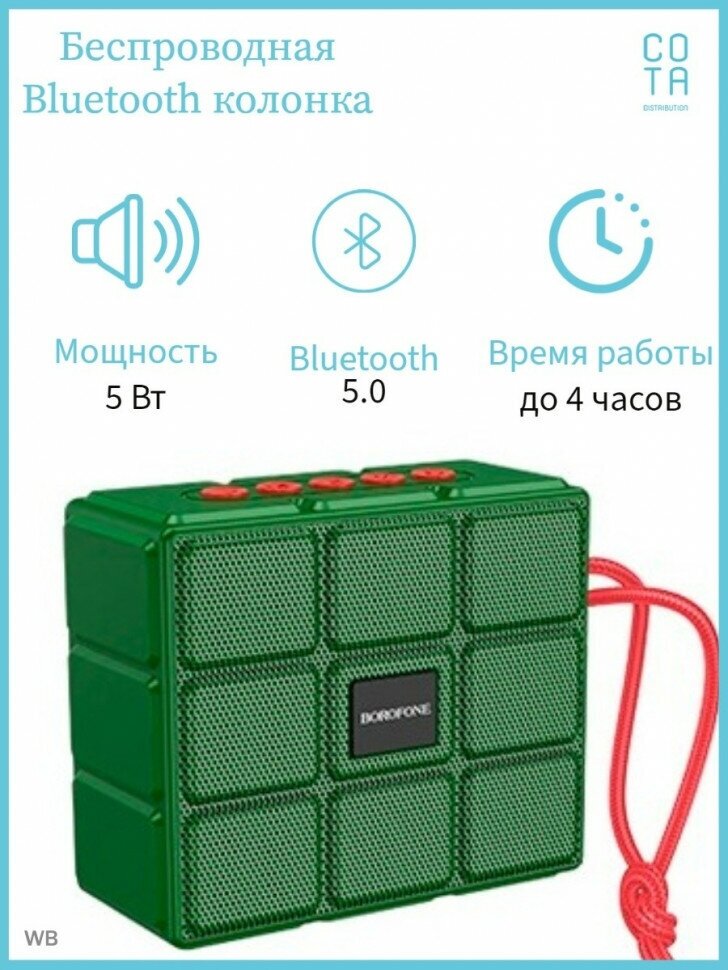 Купить Колонка Borofone BR16 Gage (MicroUSB/USB/5 Вт/1200 mAh) <темно-зеленый>
