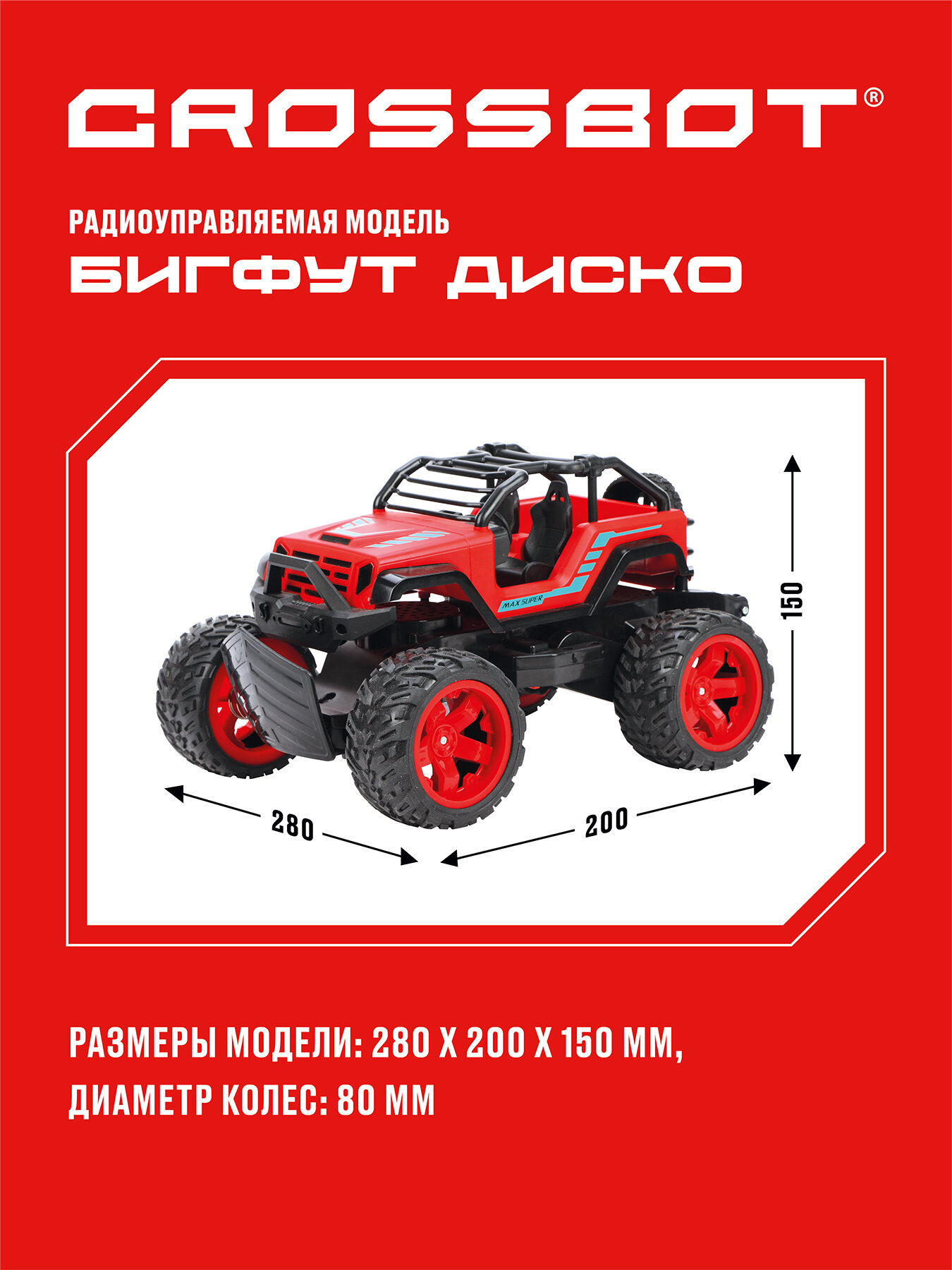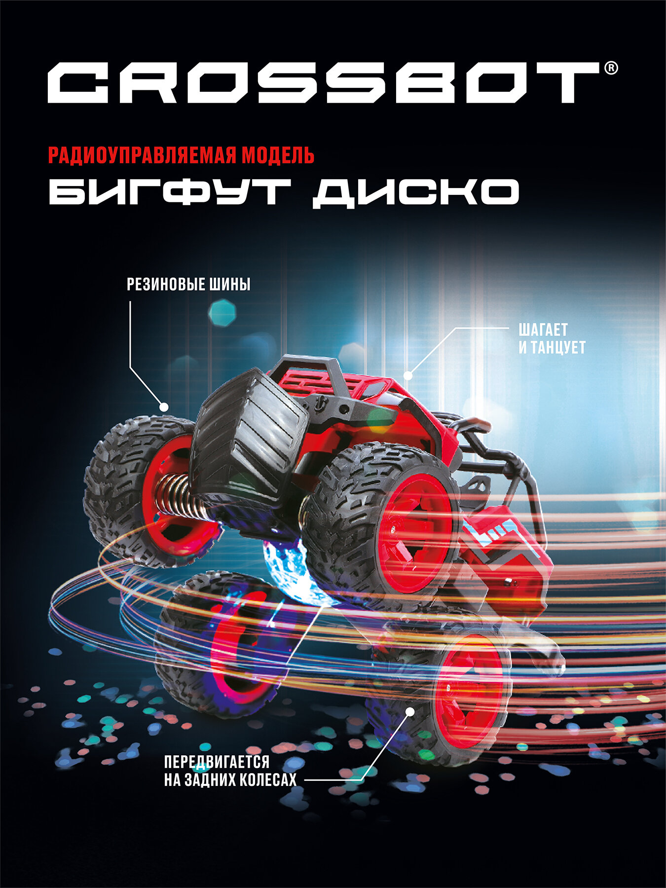 Машинка на радиоуправлении Crossbot Бигфут Диско танцует, 3D подсветка, красный