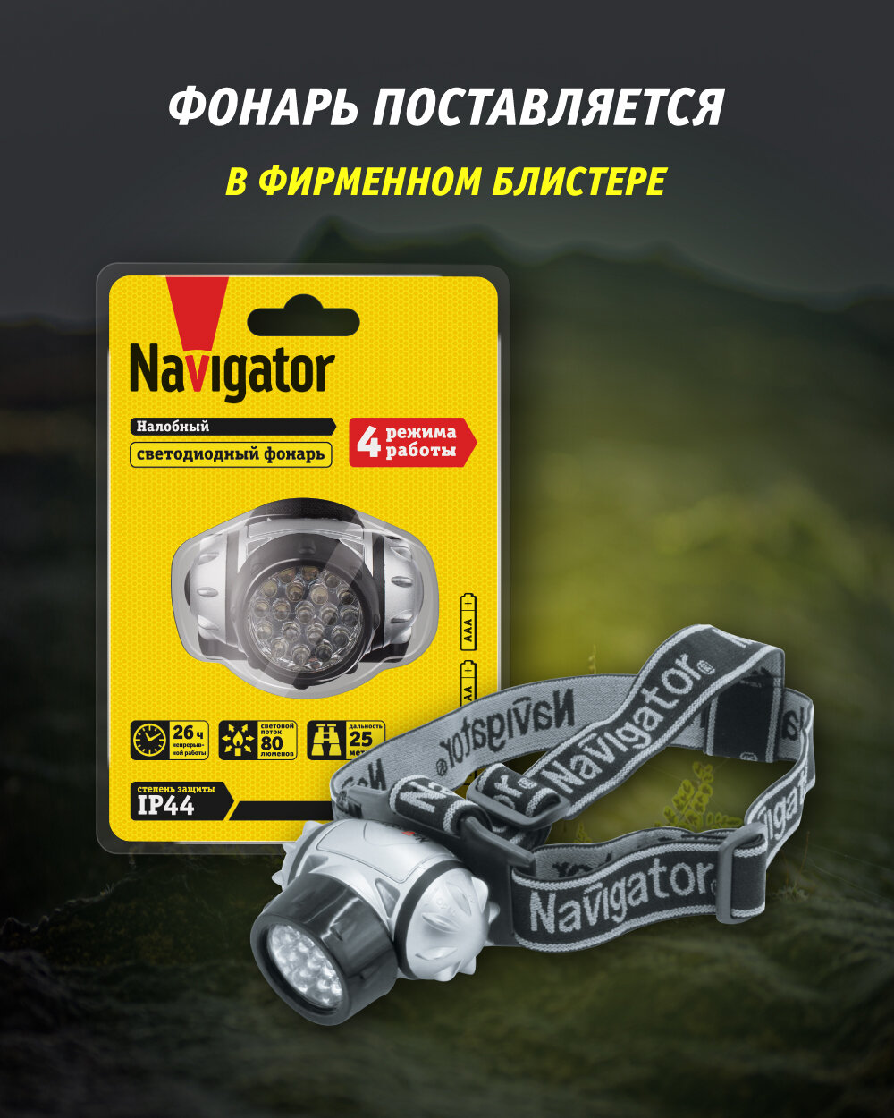 Фонарь светодиодный налобный Navigator, 19 LED, 4 режима