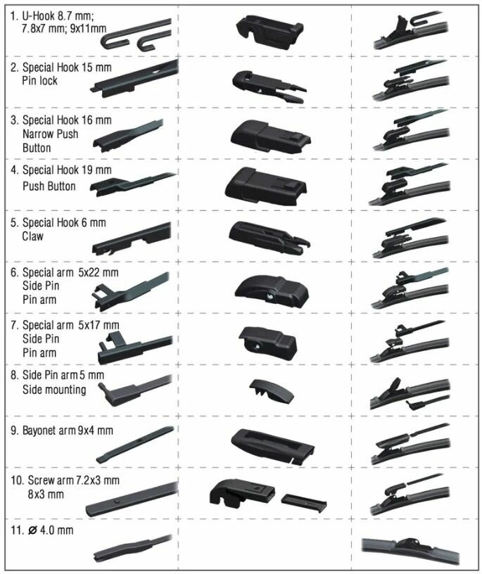| Тип крепления | боковой штырь (Pin Arm) / крючок (hook) / штыковой замок (bayonet) |