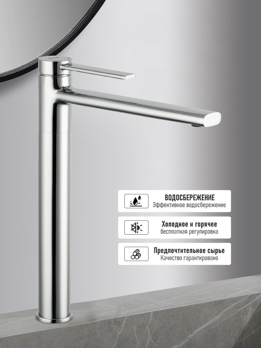 | Плюсы: | Отличный смеситель для раковины на столешнице. Высокий и удобный |