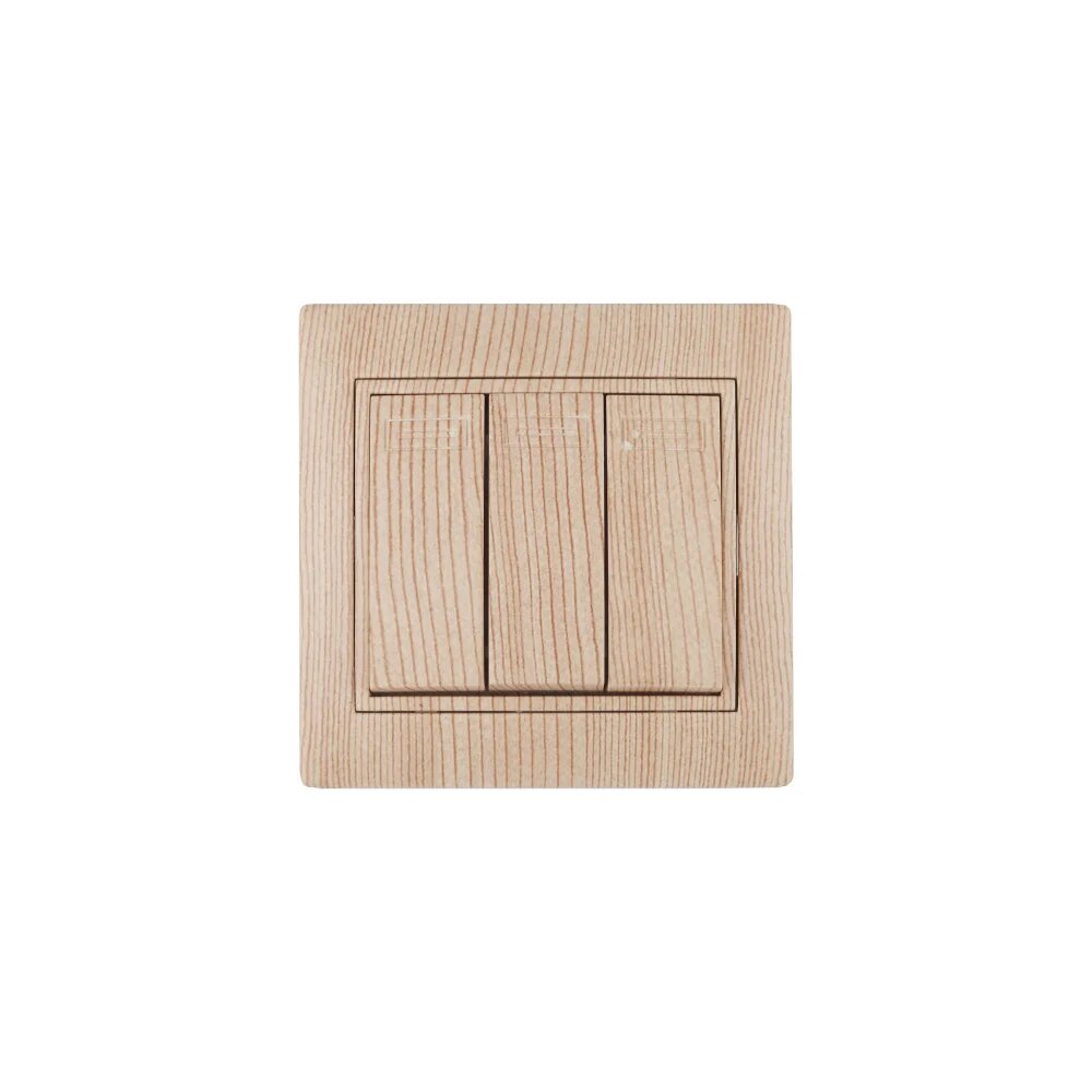 Выключатель тройной трёхклавишный скрытой установки, дерево сосна