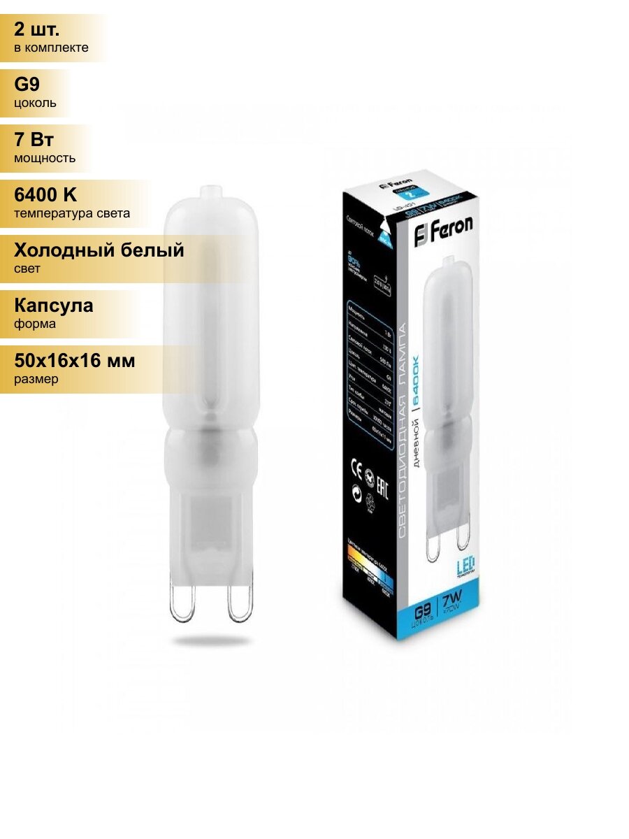 Купить (2 шт.) Светодиодная лампочка Feron G9 230V 7W(560lm) 6400K 6K 50x16 матов. LB-431 25757 Холодный белый. Цоколь G9