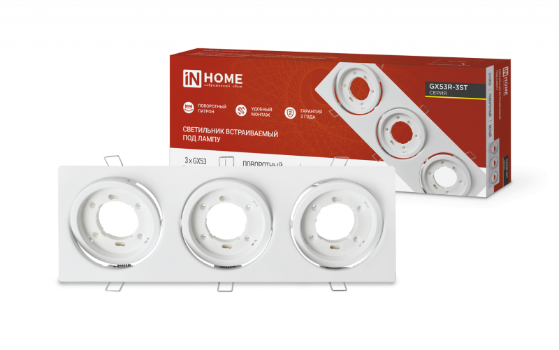 Купить IN HOME Светильник встраиваемый GX53R-3ST 3RW металл под лампу GX53 230В 4690612021577
