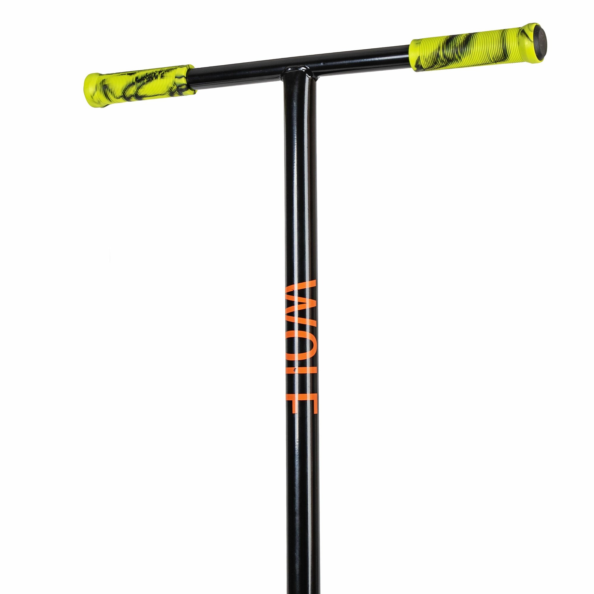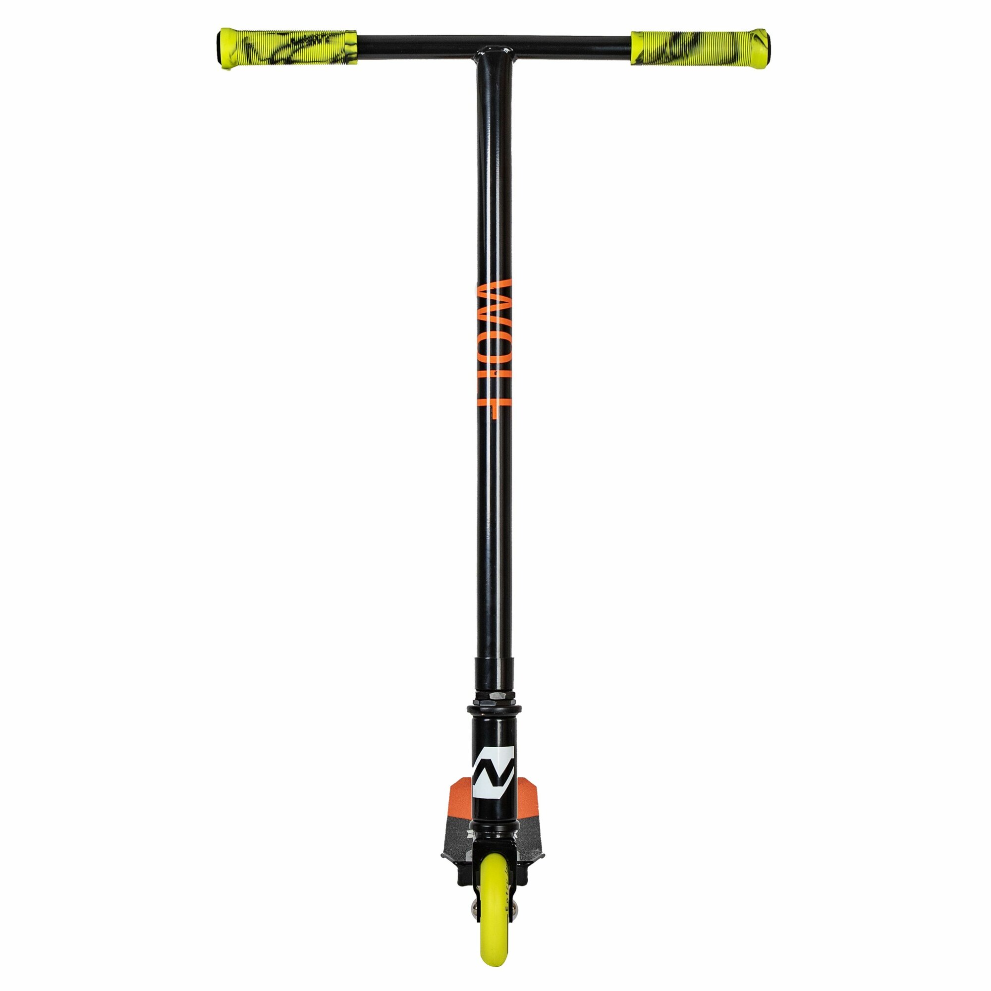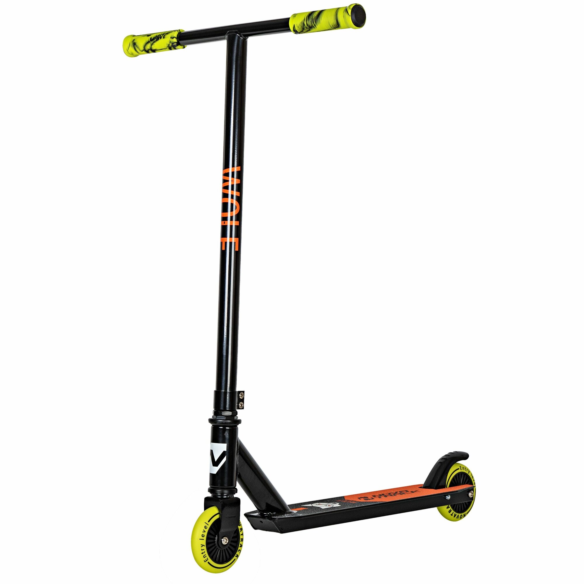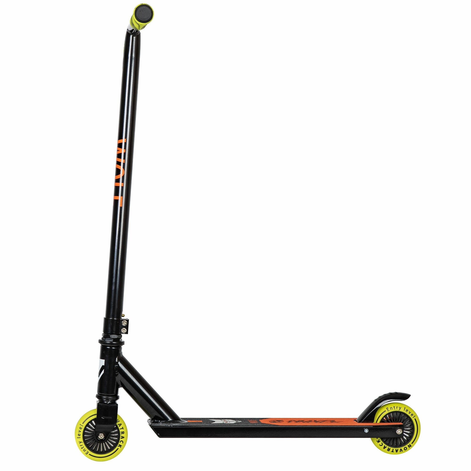 Купить Самокат трюковый для детей NOVATRACK WOLF EL, PU колеса с пластик.ободом плотностью 84A, abec7, зажим 2 болта, стальной Y-руль,черно-оранжевый