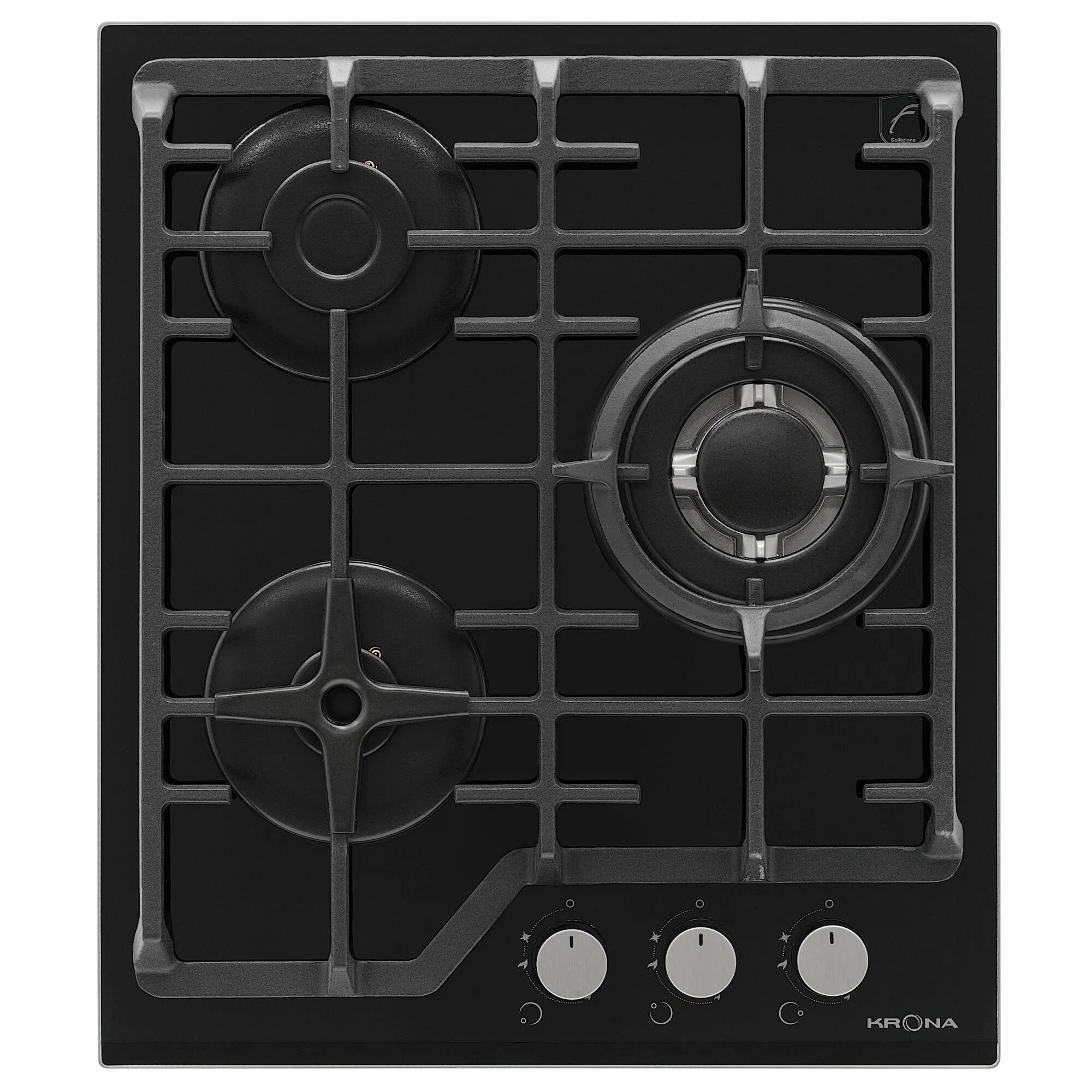 Купить Варочная панель газовая встраиваемая KRONA / Крона CORNIOLA 45 BL эмалированная сталь черный 54х450х510мм 3 конфорки 1 решетка электроподжиг / кухонная плита