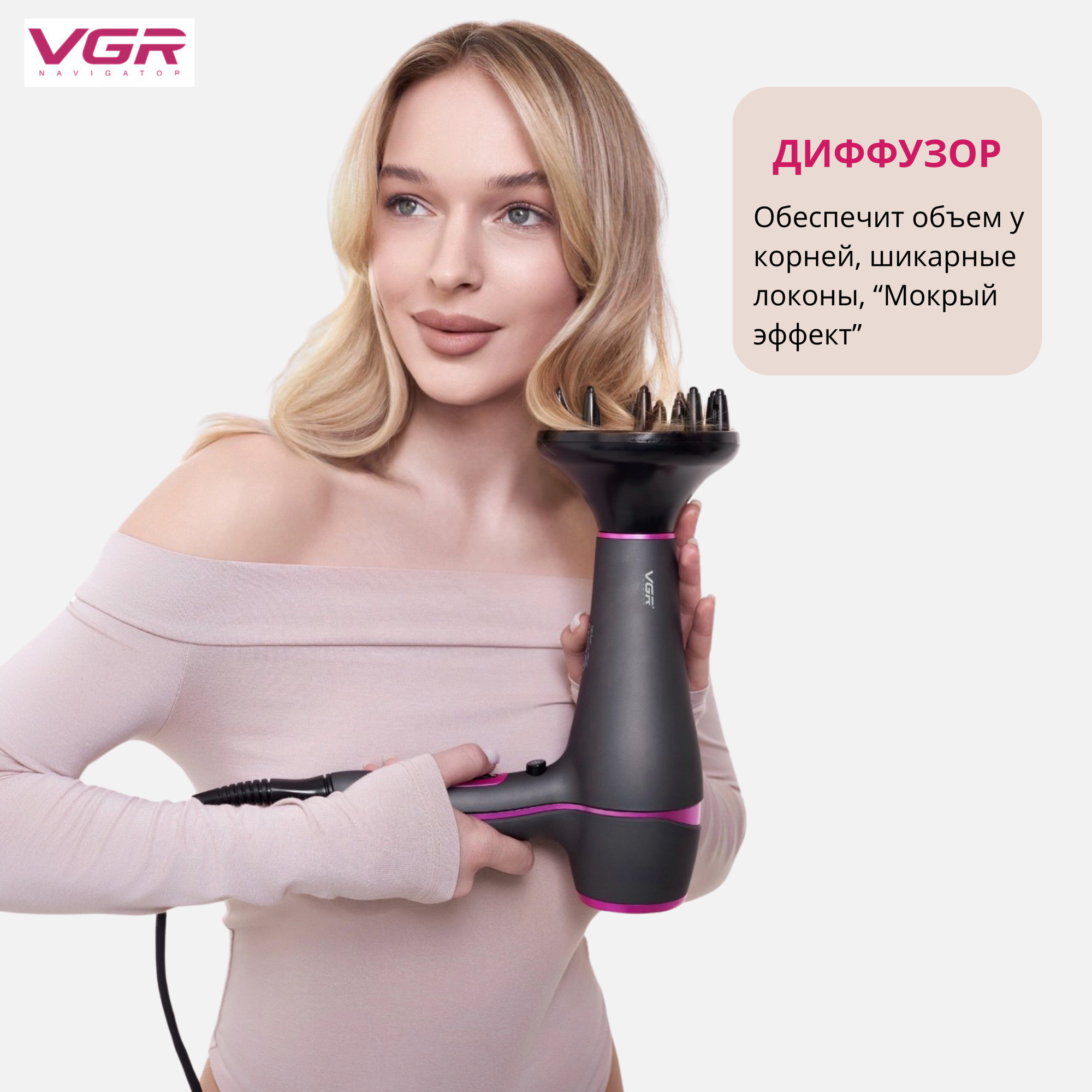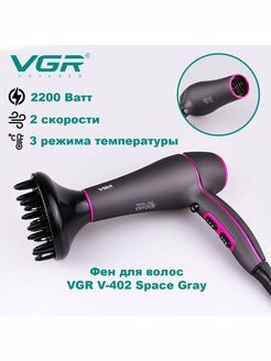 Фен для волос профессиональный с насадками VGR V-402