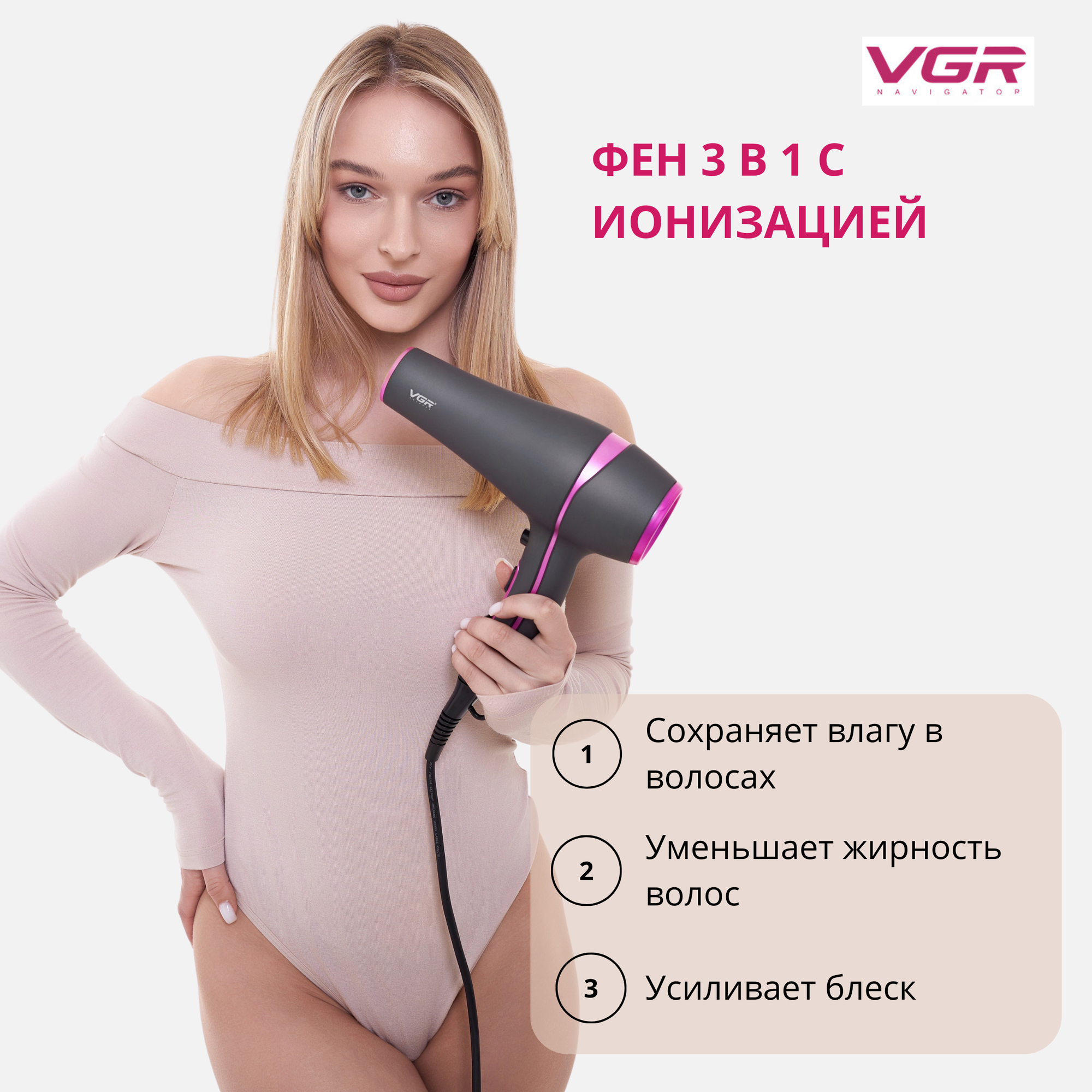 Фен с ионизацией для волос VGR V-402