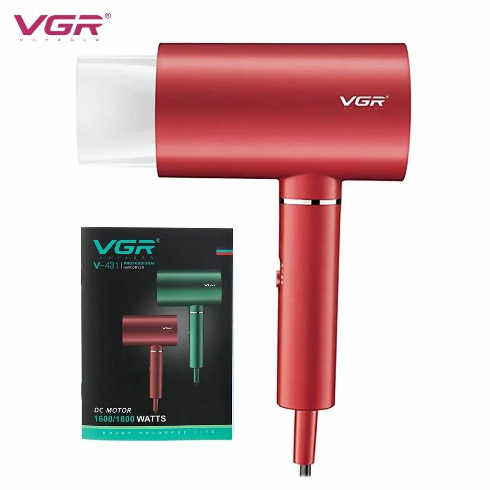 Фен для волос VGR V-432 с насадкой, складная ручка, компактный, дорожный