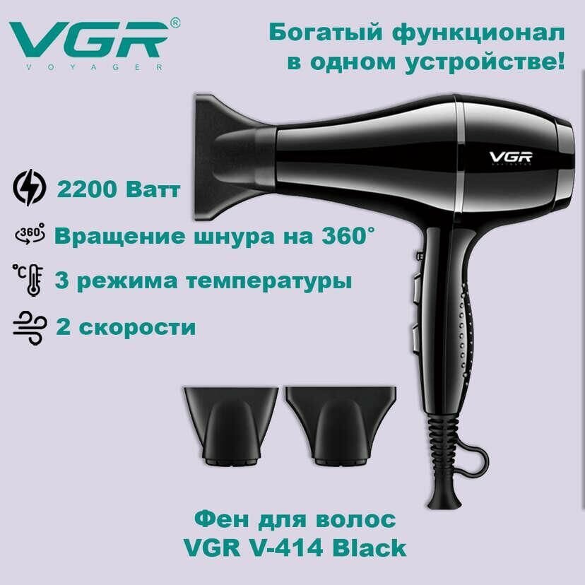 Профессиональный фен для волос VGR с насадками V-462 (черный)