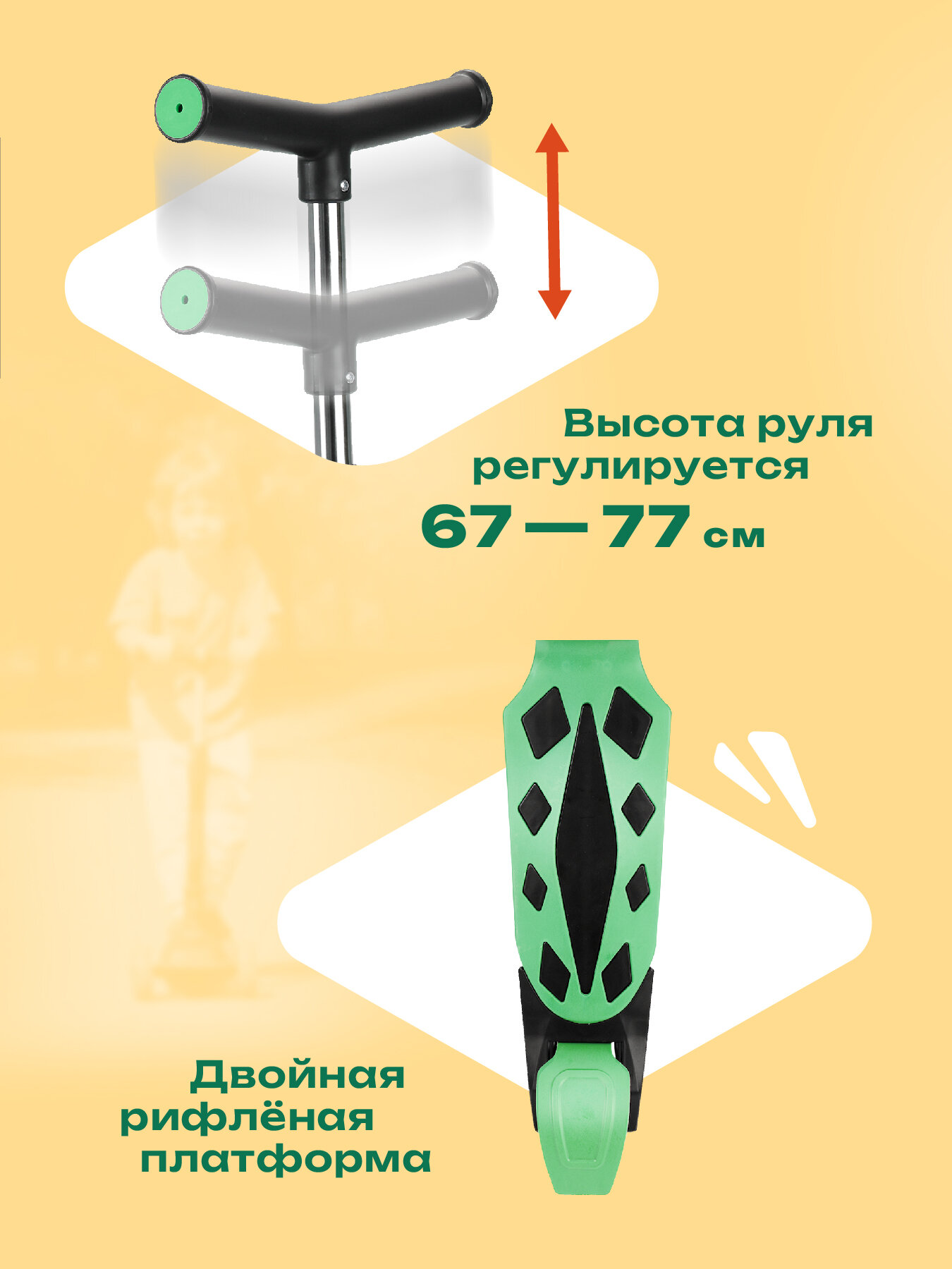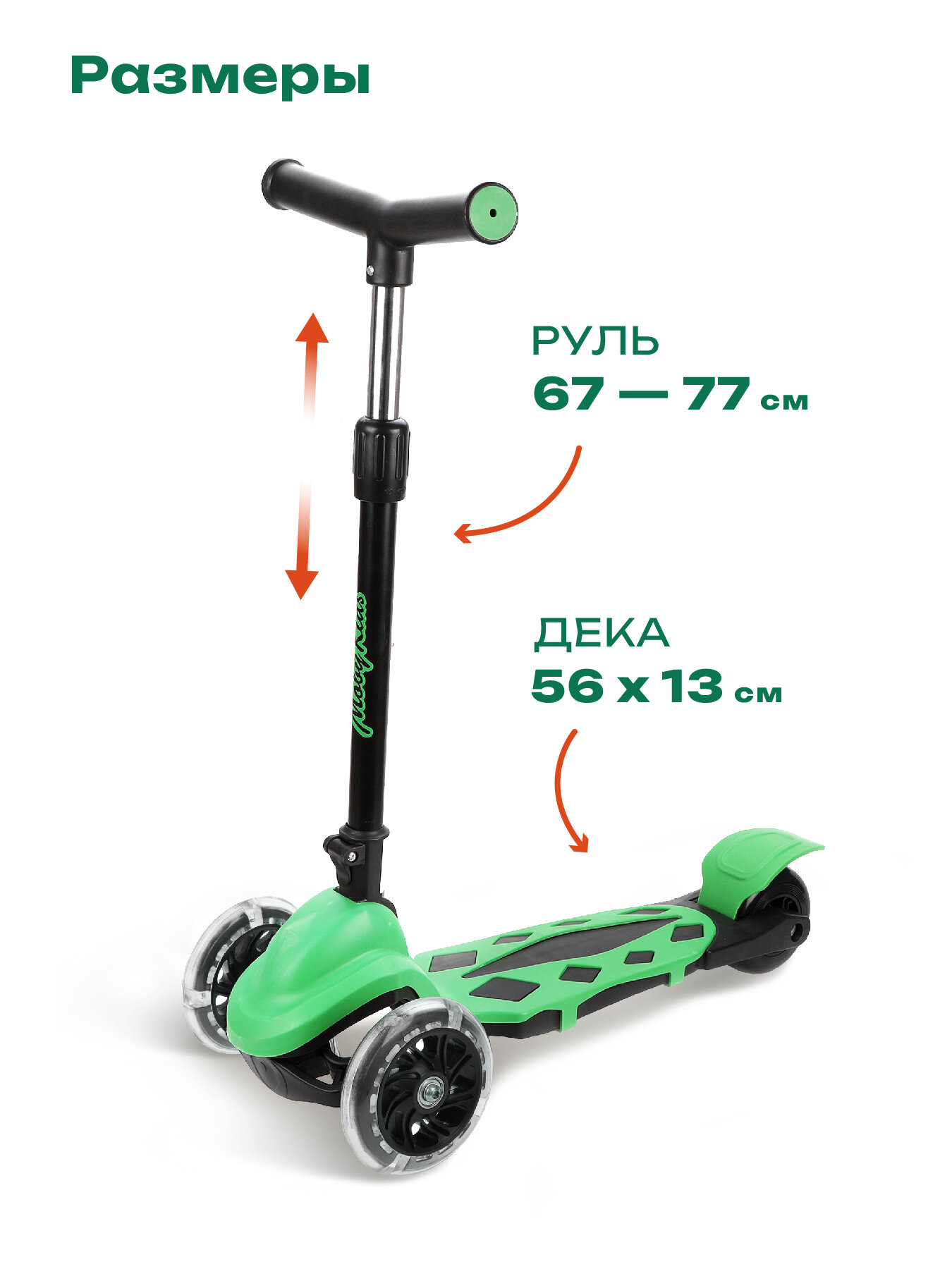 Самокат трехколесный "MobyKids" "Dragon" складной, 120 PVC, со светом (цвет зеленый)