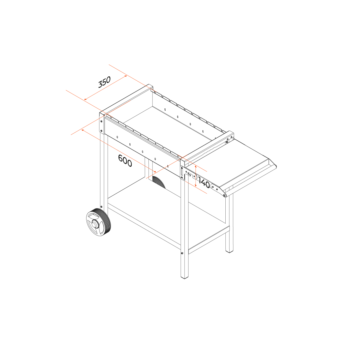 Купить Мангал "MAH 202" 106,5 х 52 х 79,7 см, 2 мм, колеса, боковая полка