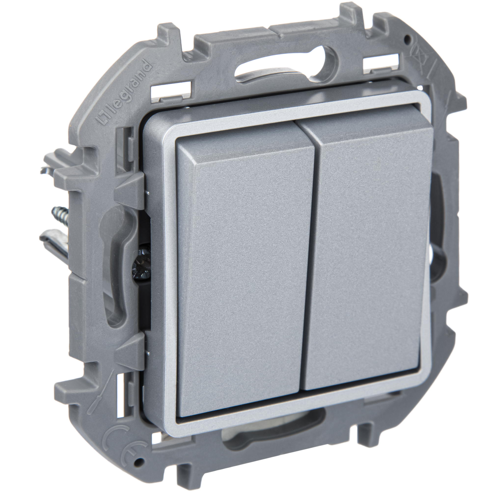 Выключатель 2-х клавишный Legrand Inspiria для скрытого монтажа, цвет - алюминий