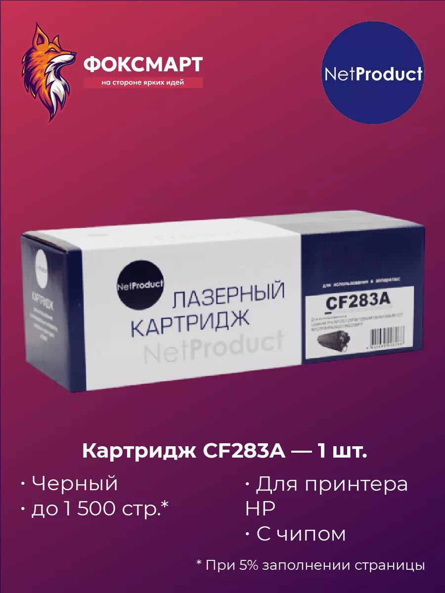NetProduct CF283A Картридж для HP LJ Pro M125 M126 M127 M201 M225MFP, 1,5К
