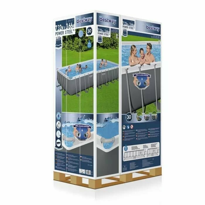 Купить Каркасный бассейн Power Steel 732х366х132см, 30045л, песч.фил.-нас. 5678л/ч, лестница, тент, попл.-доз