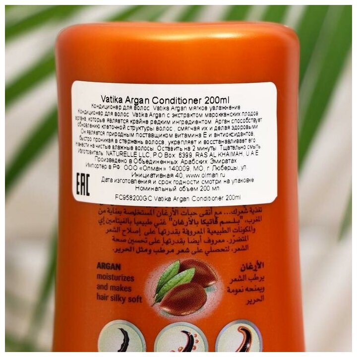 Кондиционер для волос VATIKA ARGAN "Мягкое увлажнение", 200 мл
