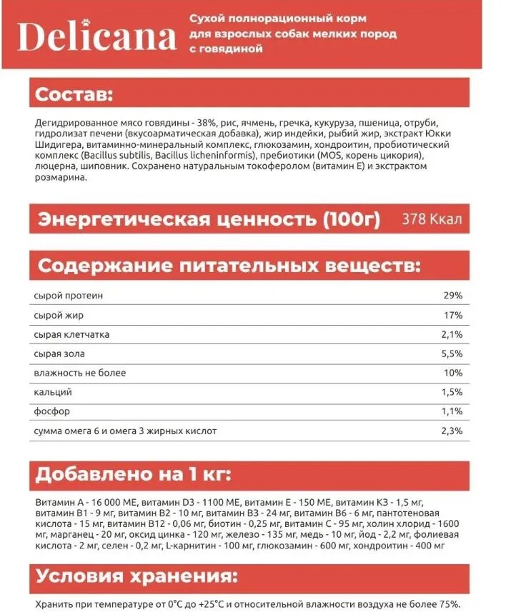 Ниже Вы можете прочитать отзывы на DELICANA Корм сухой для собак мелких пород Говядина 400 гр, ознакомится с подробными характеристиками, посмотреть интересные обзоры и фотографии на DELICANA Корм сухой для собак мелких пород Говядина 400 гр.