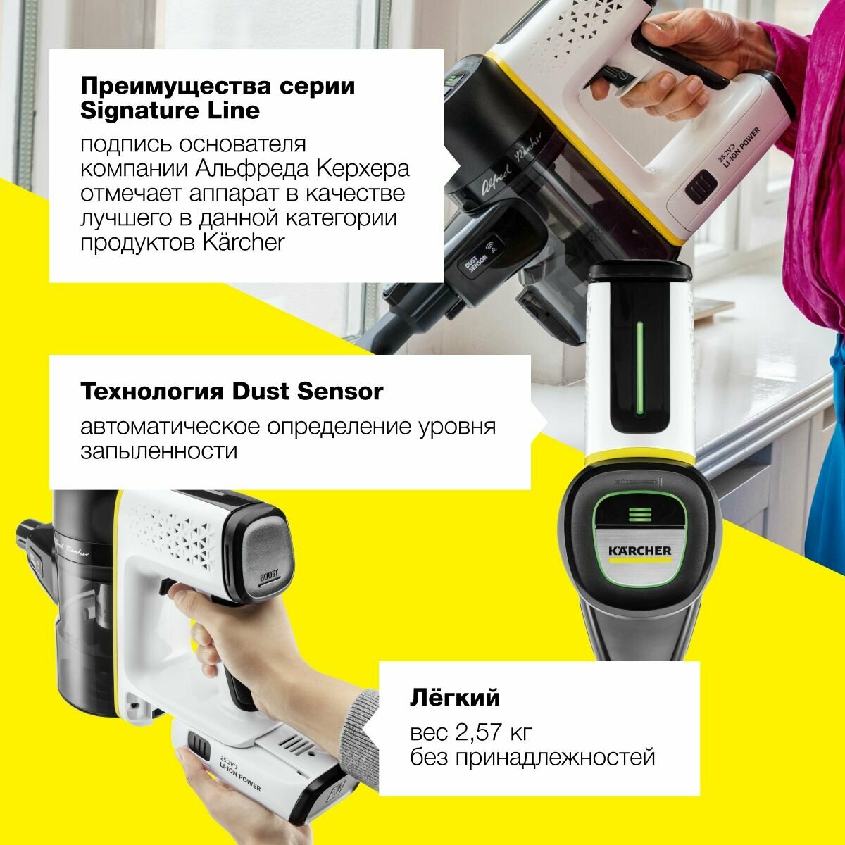 Аккумуляторный пылесос Karcher VC 7 Signature Line 1.198-750.0, вертикальный, настенный держатель с функцией заряда