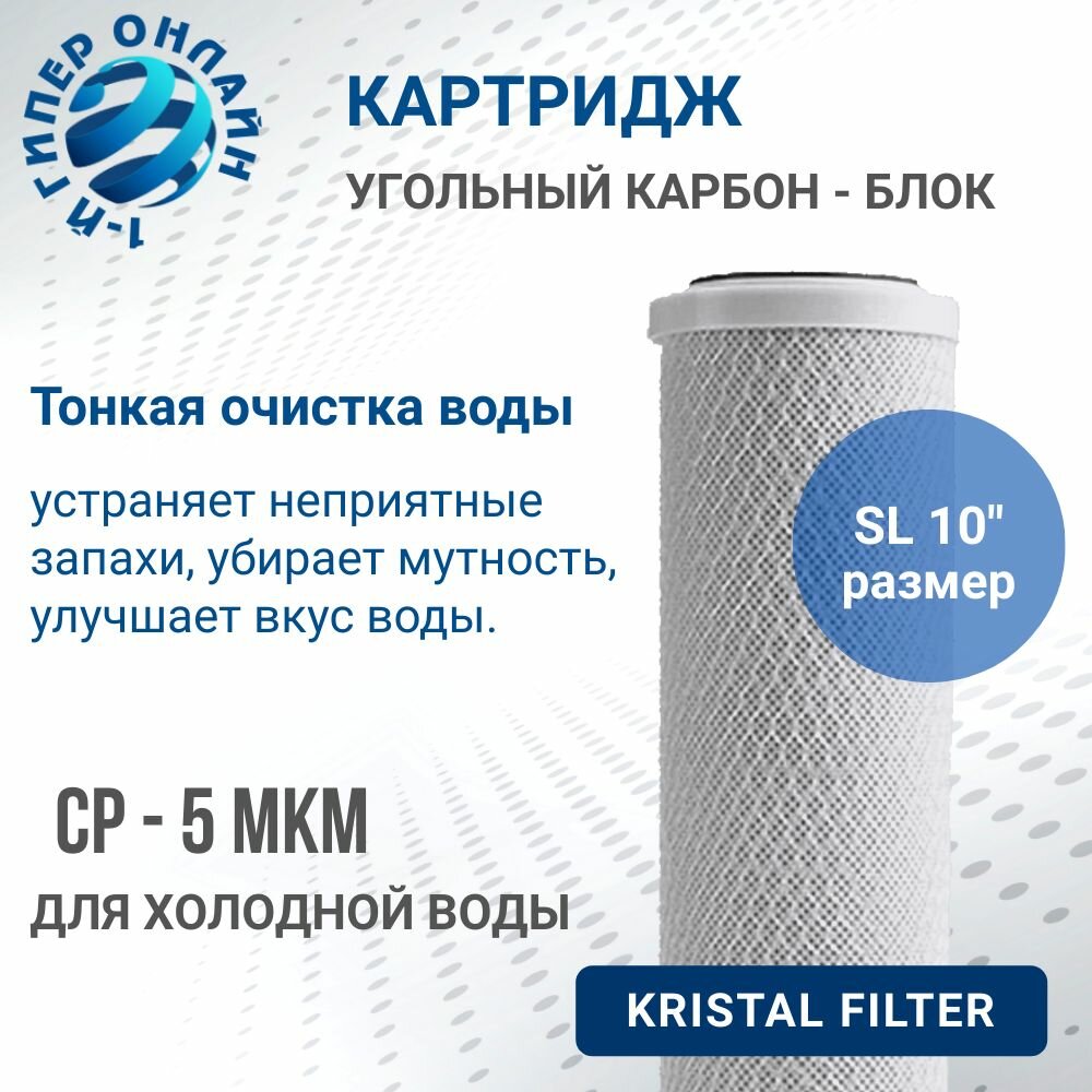 Купить Картридж для фильтра воды, угольный, карбон блок, Slim 10, KRISTAL FILTER. Для магистрального фильтра. CP