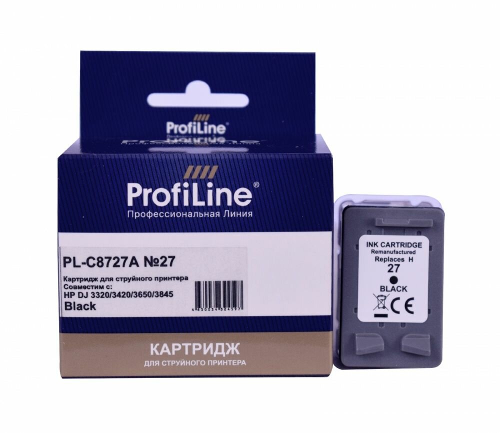 Купить Картридж для струйного принтера C8727A ProfiLine для HP 3320/3325/3420/3425/3520/3535/3550/3620/3645/3647/3650/3653/3740/3745/3840/3843/3845/3847/3848/5650/5652/5655/5850/4212/4215/4219/4252/4255/4315/4355/J5520/5605/5610/5615/6110/1210 и др., цвет черный