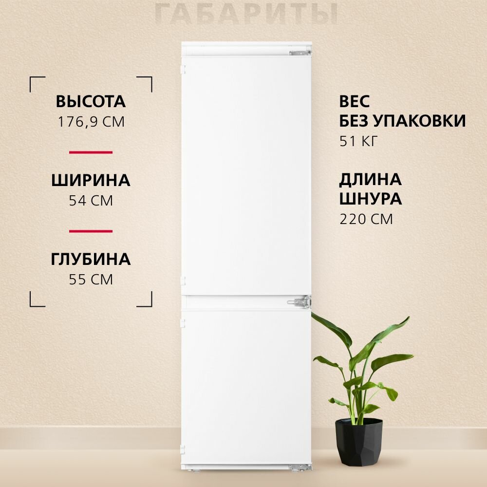 Встраиваемый холодильник Hansa BK333.0U двухкамерный, объем 270 литров, морозильная камера Low frost, LED подсветка