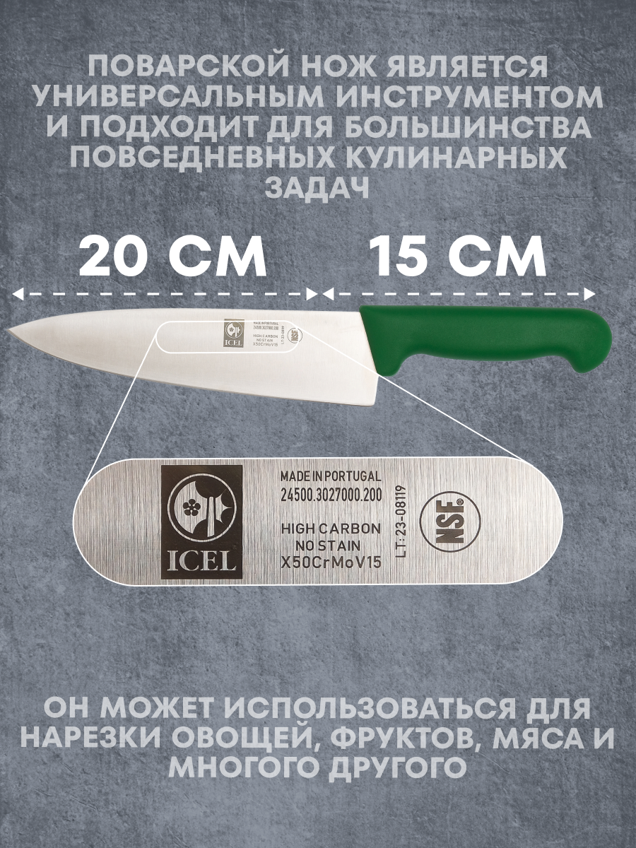 Шеф-нож поварской PRACTICA, узкое лезвие, 200/350 мм., зеленый, Icel интересное: