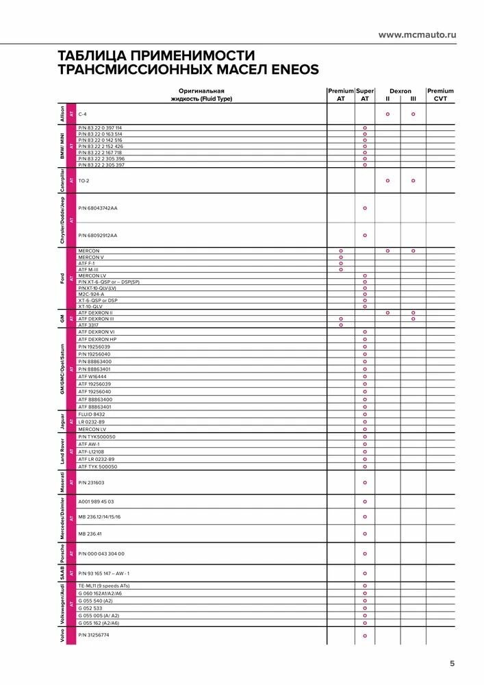 | Допуски OEM | Hyundai SP III / Kia SP III / Mitsubishi SP-III |
