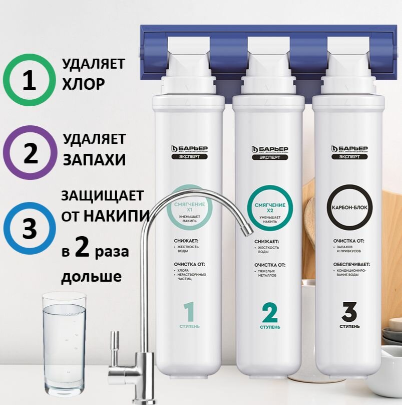 Фильтр под мойку Барьер Эксперт Софт для мягкой воды обезжелезивание 3 ступени
