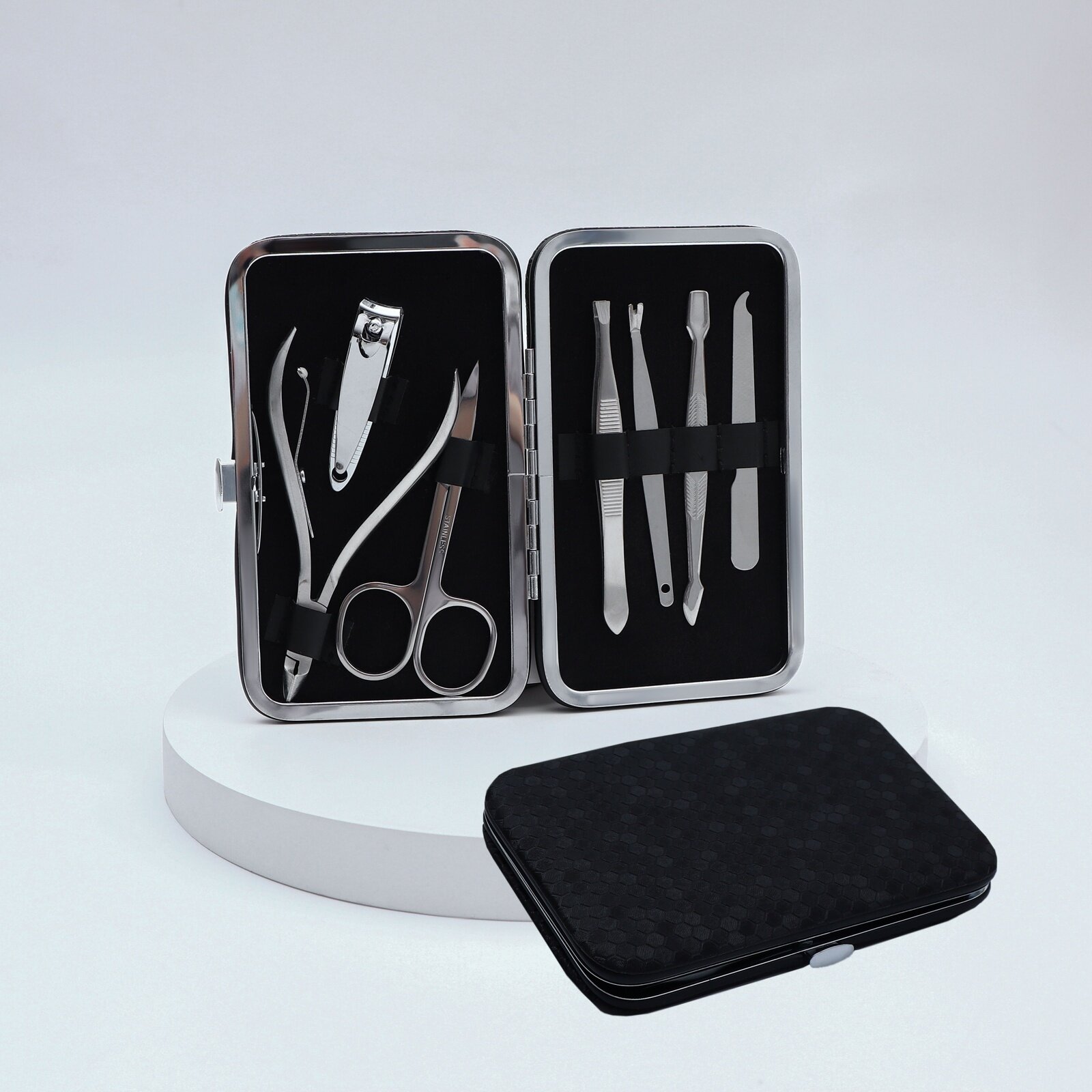 Набор маникюрный, 7 предметов, в футляре, цвет чёрный