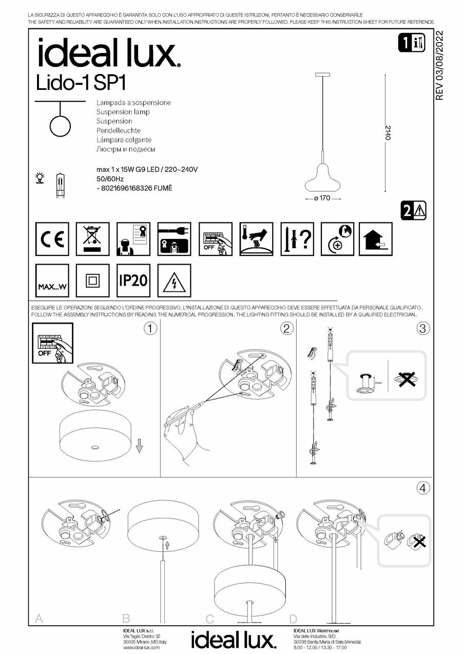 Ниже Вы можете прочитать отзывы на Светильник подвесной ideal lux Lido-1 SP1 макс.1х15Вт IP20 G9 230В Серый/Хром Стекло/Металл 168326., ознакомится с подробными характеристиками, посмотреть интересные обзоры и фотографии на Светильник подвесной ideal lux Lido-1 SP1 макс.1х15Вт IP20 G9 230В Серый/Хром Стекло/Металл 168326..