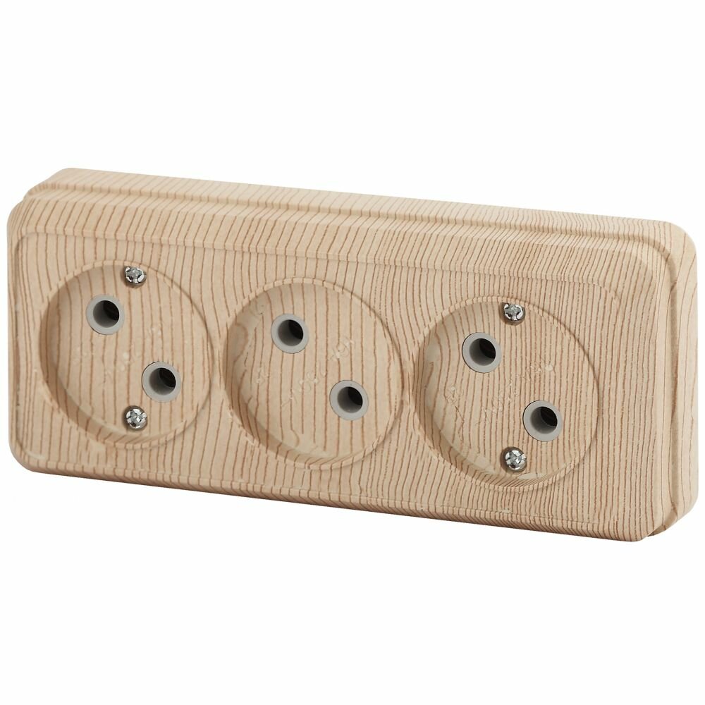 Купить Розетка Intro Quadro 2-205-11 без заземления трехместная 3х2P 16А-250В IP20 открытой установки сосна