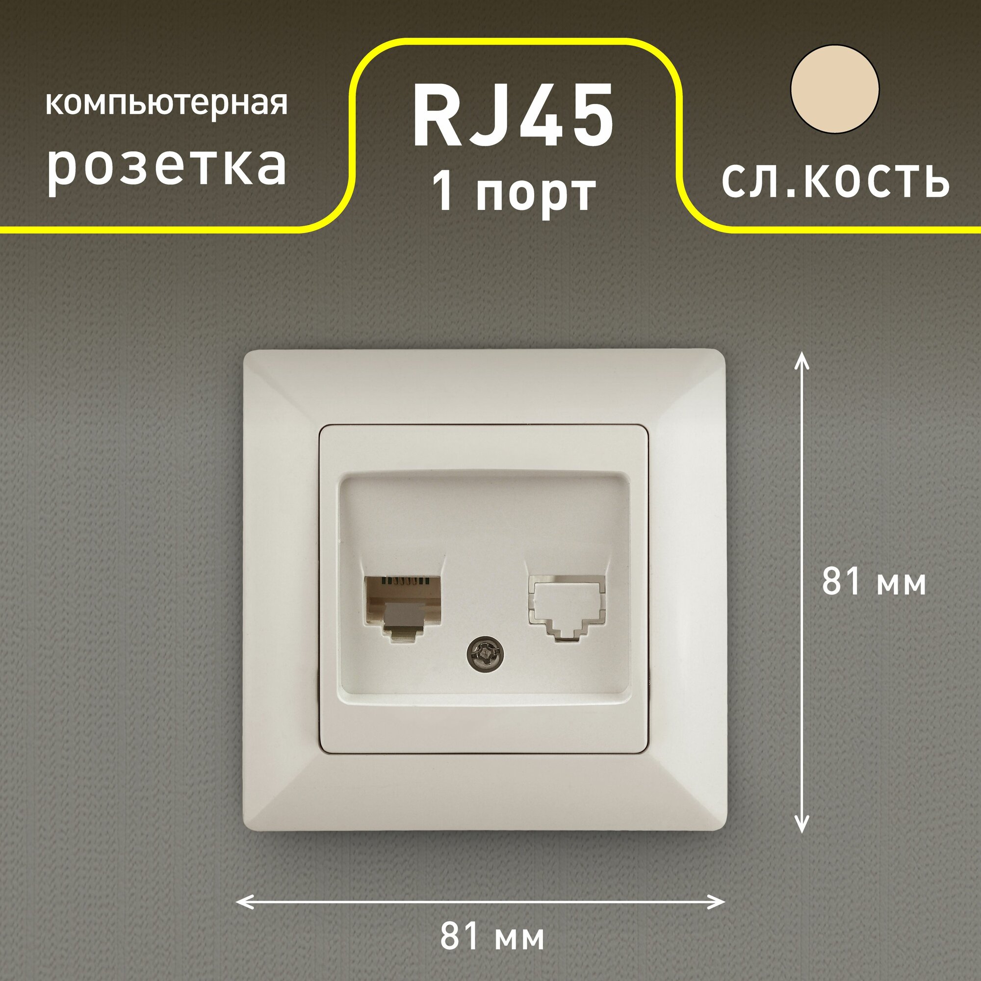 Купить Розетка компьютерная Intro Solo 4-303-02 RJ45 скрытой установки слоновая кость