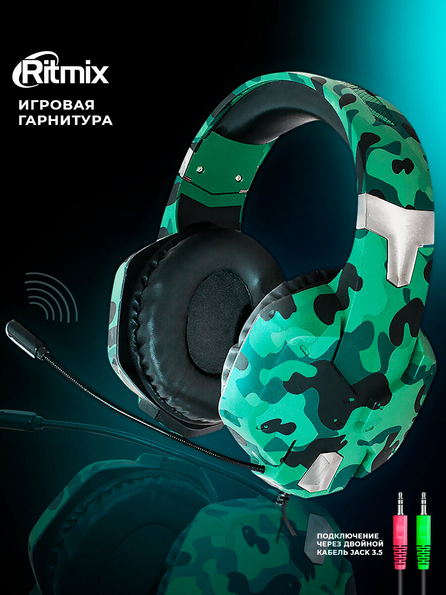 Игровая гарнитура Ritmix RH-566M Khaki Green Black