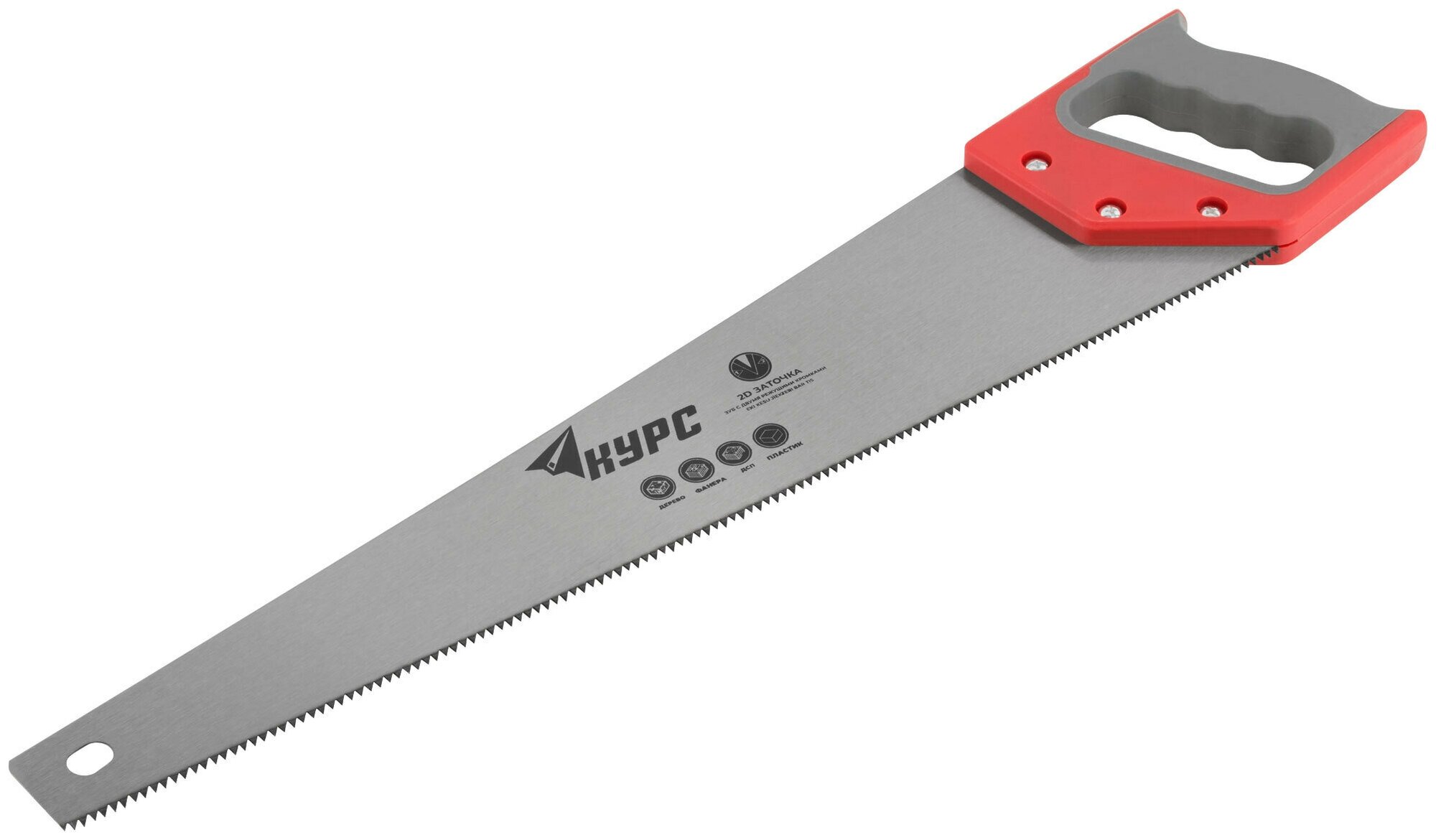 Ножовка по дереву, средний каленый зуб 7 ТPI, 2D заточка, пластиковая прорезиненная ручка 500 мм KУРС 40318 (1 шт.)