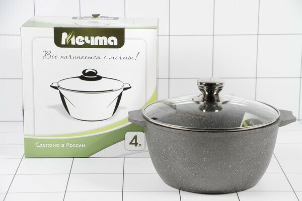 Кастрюля "Мечта" 4л Гранит с антипригарным покрытием с крышкой, можно мыть в посудомоечной машине