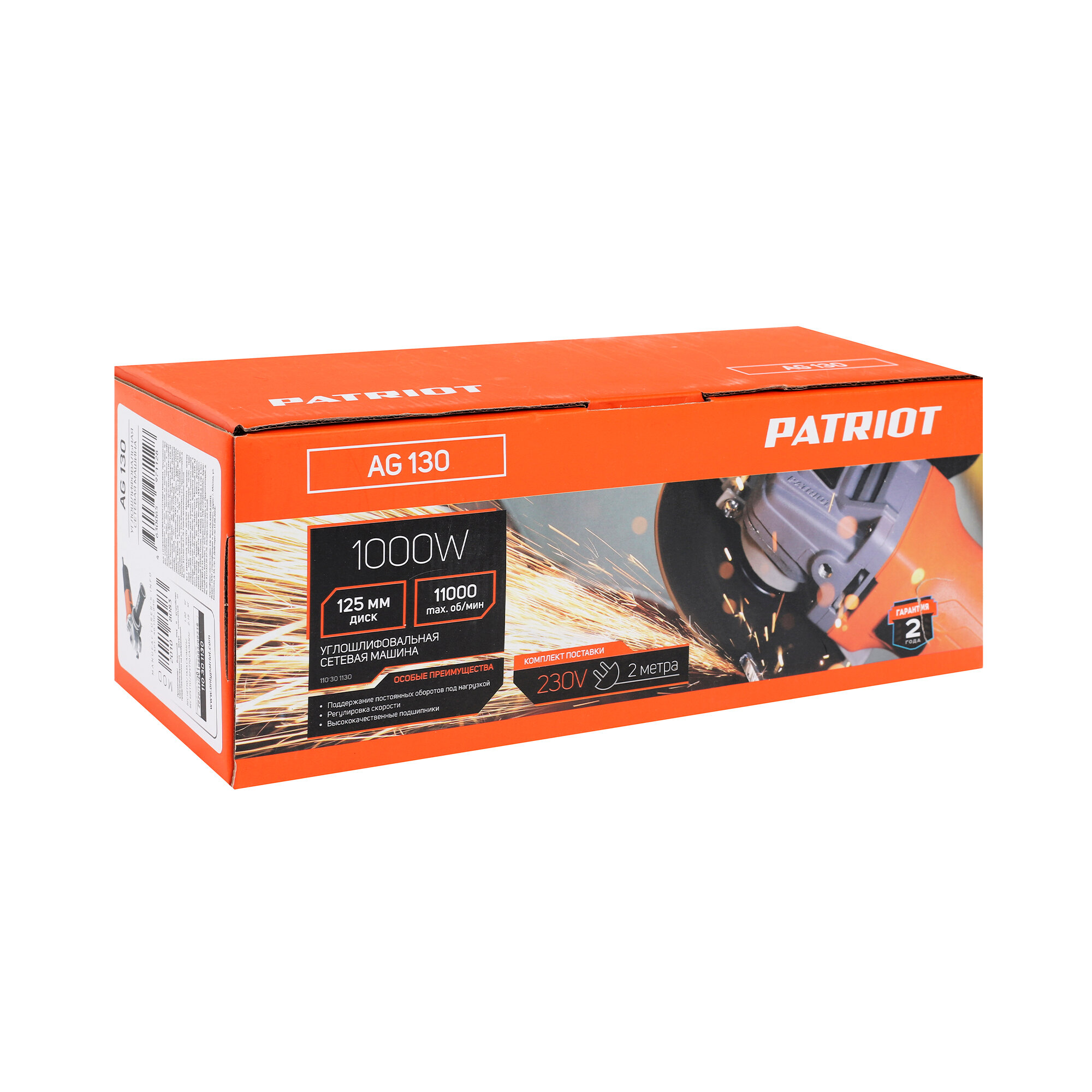 Машина углошлифовальная (УШМ) PATRIOT AG 130, мощность 1000Вт, диаметр диска 125мм, вибро, пылезащищенная Patriot 110301130