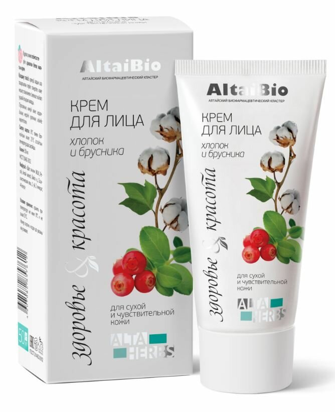 AltaiBio Крем для лица для сухой и чувствительной кожи Хлопок и брусника, 50 мл