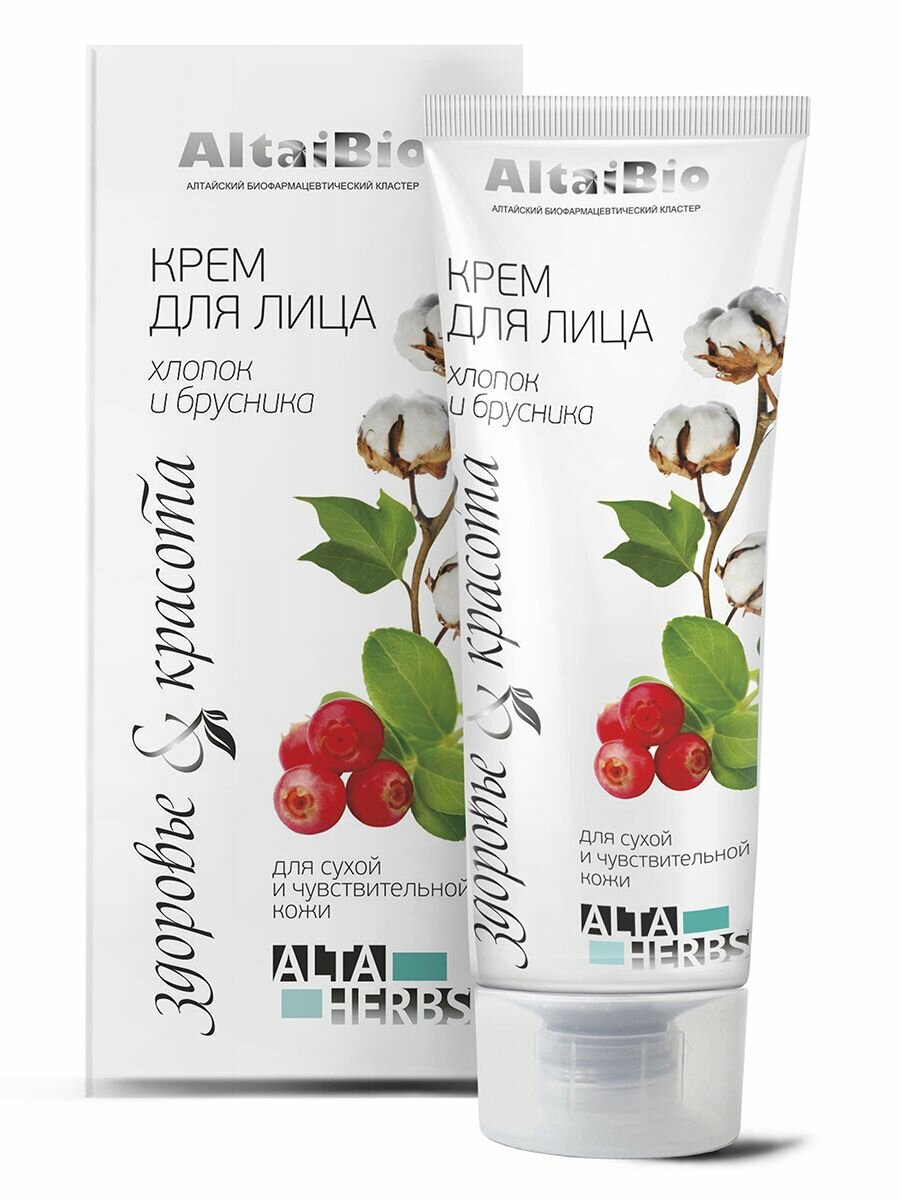 Алтайбио крем для лица для сухой и чувствительной кожи (хлопок/брусника), 50 мл