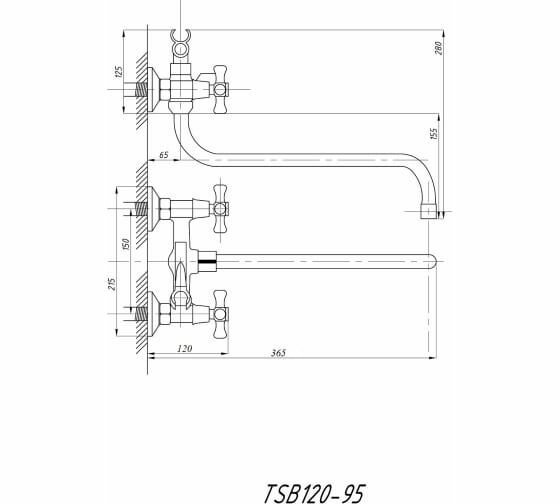 Смеситель для ванны и душа Tsarsberg TSB-120-95 тип см-вудрншла