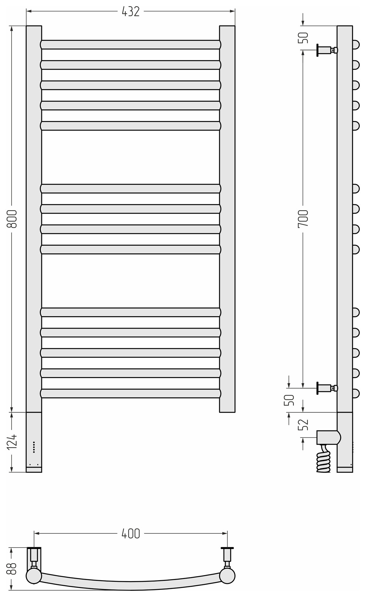 Полотенцесушитель электрический 800x400 белый глянец МЭМ левый, перемычка выгнутая Сунержа Богема 3.0 12-5802-8040