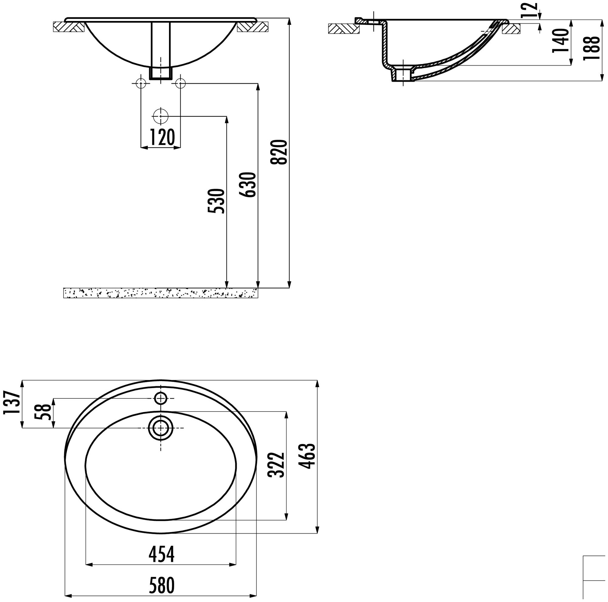 Раковина-столешница 120 см Comforty 3312