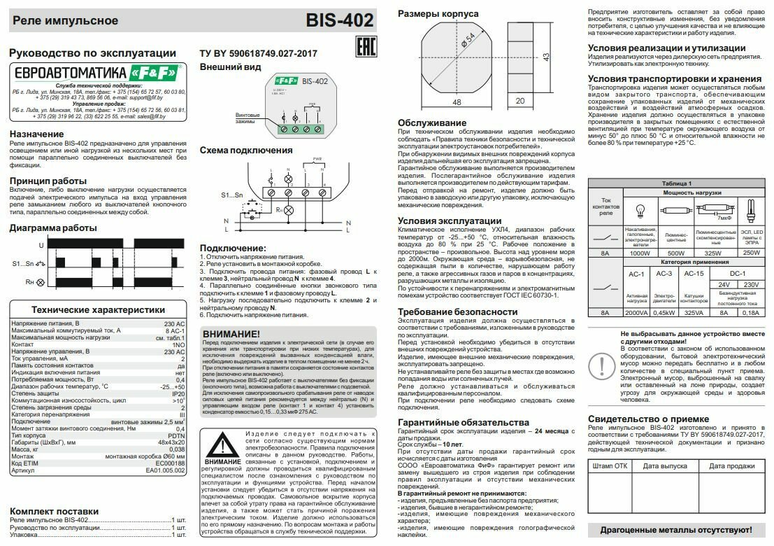 СохранитьБистабильное реле Евроавтоматика F&F BIS-402 интересное:
