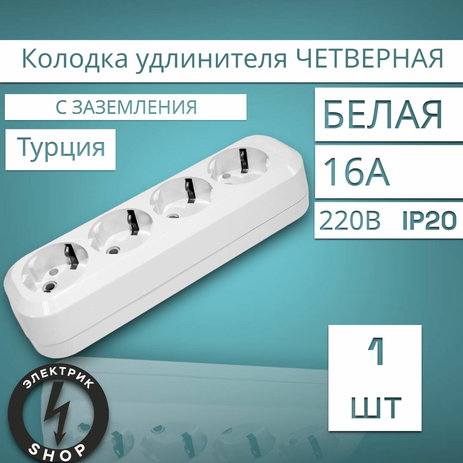 Купить Колодка MAKEL MGP151, 16 А, 4 гнезда, белый